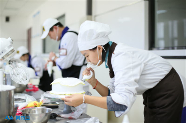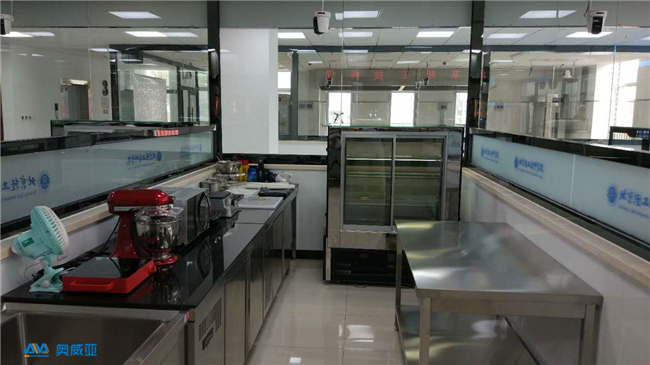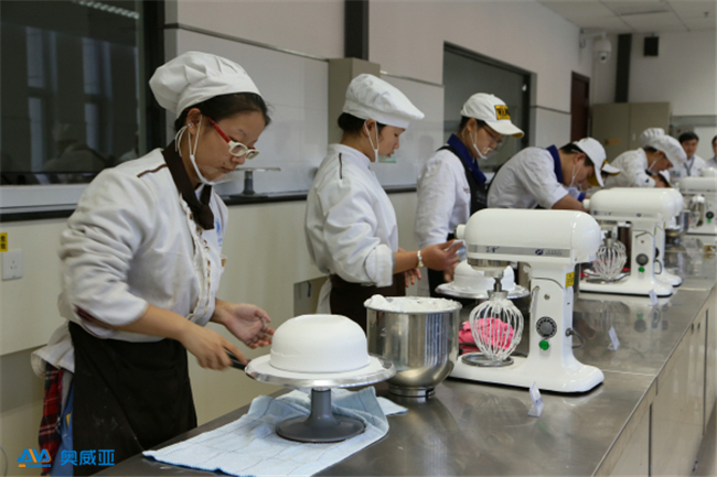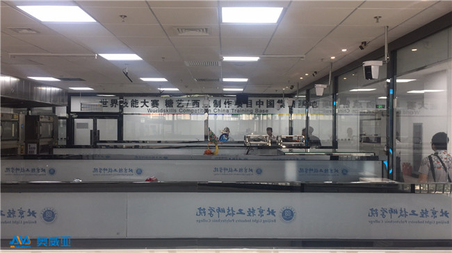 其實,用于比賽的糖藝西點實訓(xùn)室只是北京輕工技師學(xué)院門頭溝教學(xué)區(qū)眾多實訓(xùn)室的其中一間。門頭溝教學(xué)區(qū)是華北地區(qū)規(guī)模最大的西點西餐培訓(xùn)基地,建有21間教、學(xué)、做一體化實訓(xùn)教室,包括食品烘焙實訓(xùn)室、西餐實訓(xùn)室、裱花實訓(xùn)室、咖啡實訓(xùn)室、翻糖實訓(xùn)室等等,其中有18間是奧威亞為該教學(xué)區(qū)量身打造完成的。